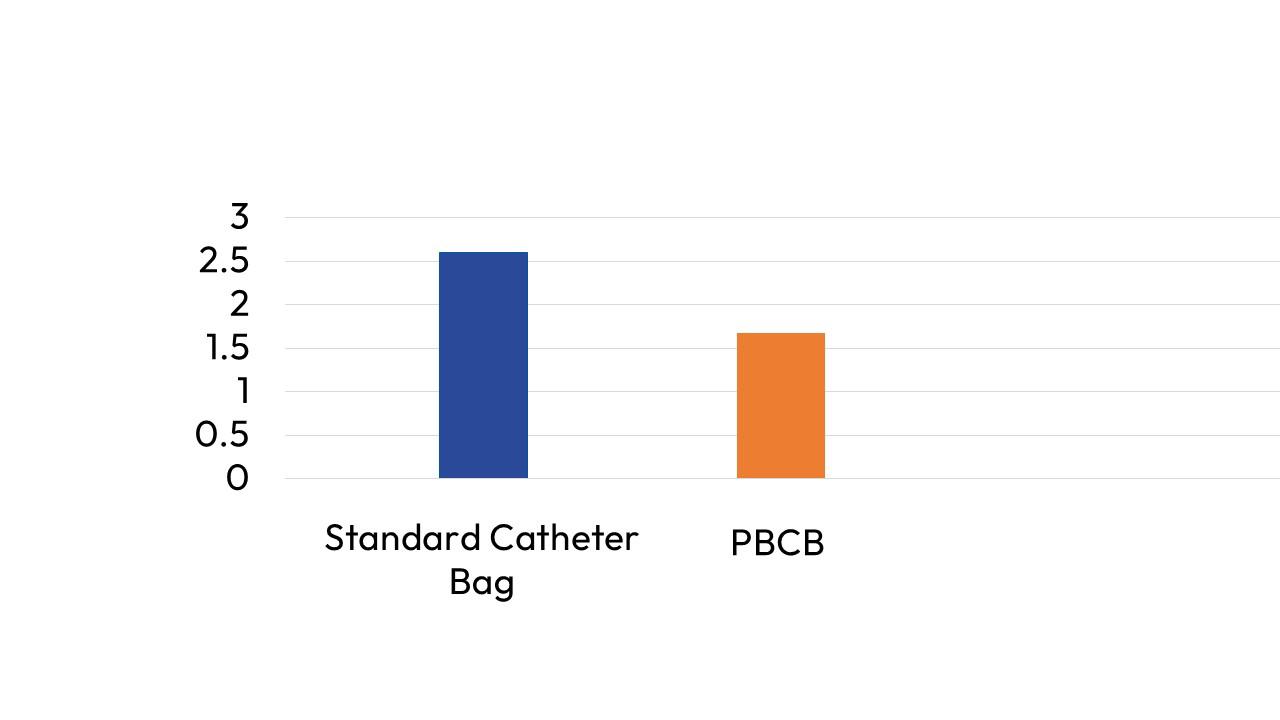 - Fewer formal bladder washouts (1.68 vs. 2.6)
